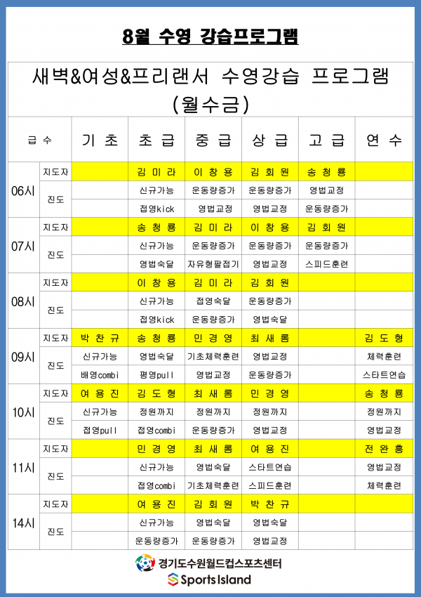 8월 수영 프로그램(성인 오전반-월,수,금) ♥ 페이지 정보 작성자 관리자 댓글 0건 조회 5,955회 작성일 20-07-19 15:27 본문 목록 이전글8월 수영 프로그램 (성인 오전반-화,목 / 아쿠아로빅) ♥ 20.07.19 다음글7월 수영 프로그램 (토요일) ♥ 20.06.19 댓글목록 댓글목록 등록된 댓글이 없습니다.